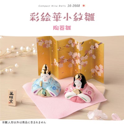 雛人形 コンパクト モダン 新作 2026年 おしゃれ かわいい お雛様 ミニ サイズ ひな人形 親王飾り 彩絵華小紋雛 桐箱 陶器 陶磁器 台座 立札 薬師窯