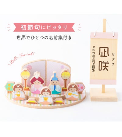 【新作 2024年】雛人形 コンパクト お雛様 ひな人形 おしゃれ 木製 木製雛人形 名前旗セット 五人飾り りん雛