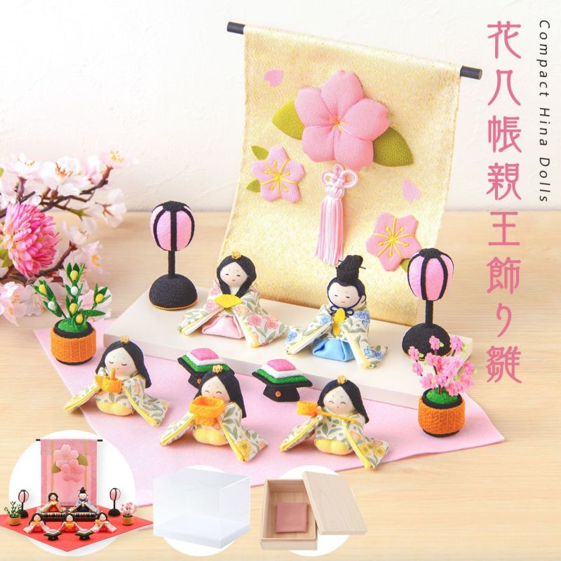 ◆雛人形 コンパクト モダン おしゃれ かわいい お雛様 ミニ サイズ ひな人形 ちりめん 小さい 花几帳わらべ雛 花ひな五人揃い 五人揃い ケース付き 桐箱 ひな祭り 京都老舗 龍虎堂 リュウコドウ 人気 インテリア おすすめ レビュー投稿 おまけ 名前 木札◆