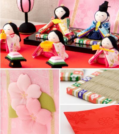 おしゃれなひな人形 ちりめん 省スペースで飾れる!龍虎堂
