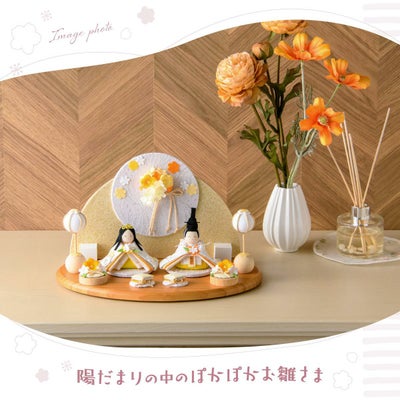 春のぽかぽかとした陽だまりの中にいるような温かな色味のおひな様。