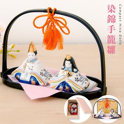 ◆【 雛人形】 雛人形 コンパクト おしゃれ 陶器 親王飾り 【染錦手籠雛(大手籠付)】 立札 薬師窯 ひな人形 お雛様 ひなまつり◆