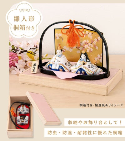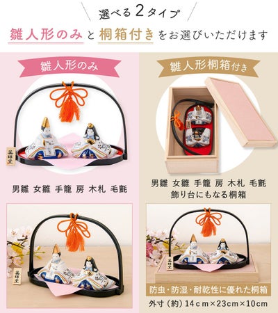 ※お人形に付属の保管箱は、厚手の紙製の箱となります。木製ではございません。ご了承くださいませ。