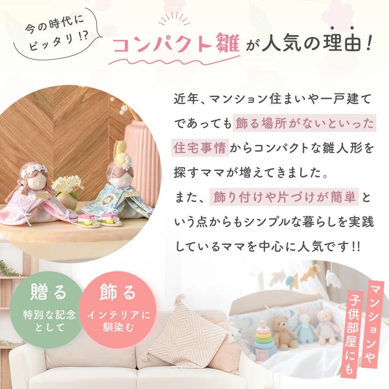 他の画像を見る 販売価格 ¥ 7,150 税込 詳細を見る お気に入りに登録する 送料無料 おしゃれなひな人形 ちりめん 省スペースで飾れる!龍虎堂 雛人形 コンパクト かわいい ふっくら立姿雛 親王飾り リュウコドウ 在庫切れ