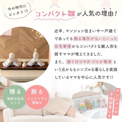 古の習わしと現代の雛祭りを融合し、お子さまのお部屋にお飾りいただく、季節を演出するインテリア、お店などのディスプレイや恋人への沢山の思いを込めたプレゼントなど、多くのシーンで大活躍します。