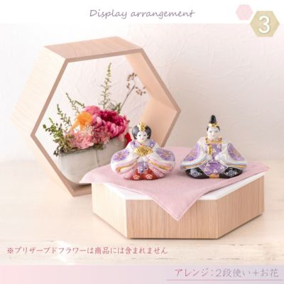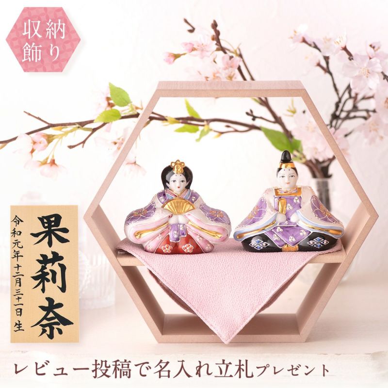 雛人形 当店だけのオリジナルデザイン 雛人形 おひなさま 雛祭り 収納飾り お雛様 ひな人形【九谷焼 雛人形 花むらさき 六角収納飾り台つき】◆