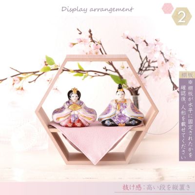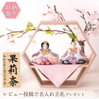 雛人形 コンパクト かわいい 花むらさき 六角収納飾り 親王飾り 九谷焼