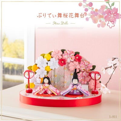●雛人形 ひな人形 コンパクト ちりめん おひな様 お雛様 【ぷりてぃ舞桜花舞台】●