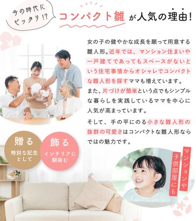 古の習わしと現代の雛祭りを融合し、お子さまのお部屋にお飾りいただく、季節を演出するインテリア、お店などのディスプレイや恋人への沢山の思いを込めたプレゼントなど、多くのシーンで大活躍します。