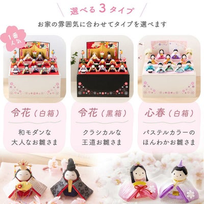 雛人形 コンパクト かわいい 三段飾り ケース飾り 令花雛 心春 十人飾り 黒/白 リュウコドウ ※白2月下旬、黒2月中旬発送予定