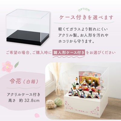 付属:令花-お雛さま・お内裏さま・三人官女・五人囃子・雪洞・桜橘・菱餅・花器・屏風・台(収納箱)【意匠登録出願済】
