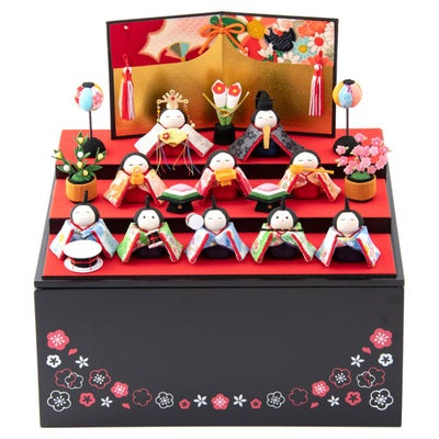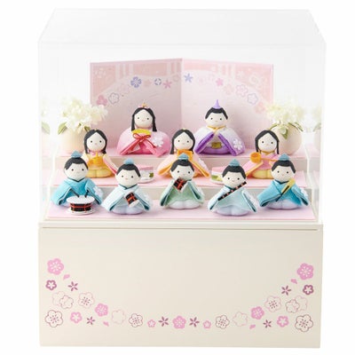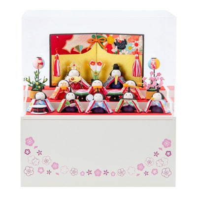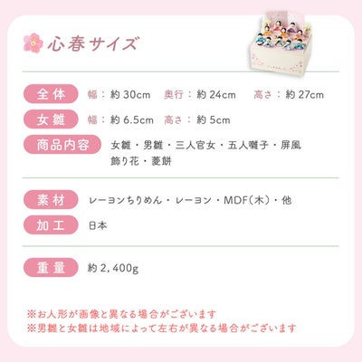 心春-女雛 ・男雛・三人官女・五人囃子・屏風・雪洞・三宝・桜橘・菱餅・毛氈・収納箱