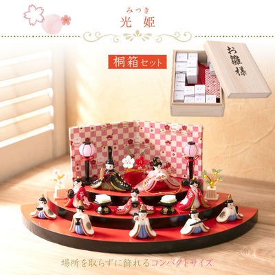 付属:お雛さま・お内裏さま・三人官女・五人囃子・雪洞・桜・橘・菱餅・屏風・台・桐箱