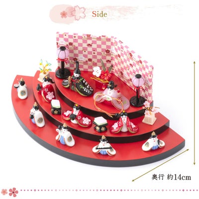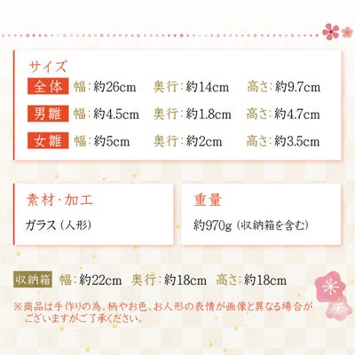 雛人形サイズ(cm):全体-幅約26/奥行14/高さ9.7(屏風の高さ)・女雛-幅約5/高さ3.5