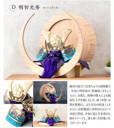 ●【2024年 新作】五月人形 コンパクト おしゃれ 兜 兜飾り 出世兜 平置き 丸型 円形 三日月 木製 日本製 高岡銅器 戦国武将 オリジナル こどもの日 節句飾り コンパクト収納 セルクル 弓月 伝統工芸品 源義経/織田信長/徳川家康/明智光秀/伊達政宗/上杉謙信●