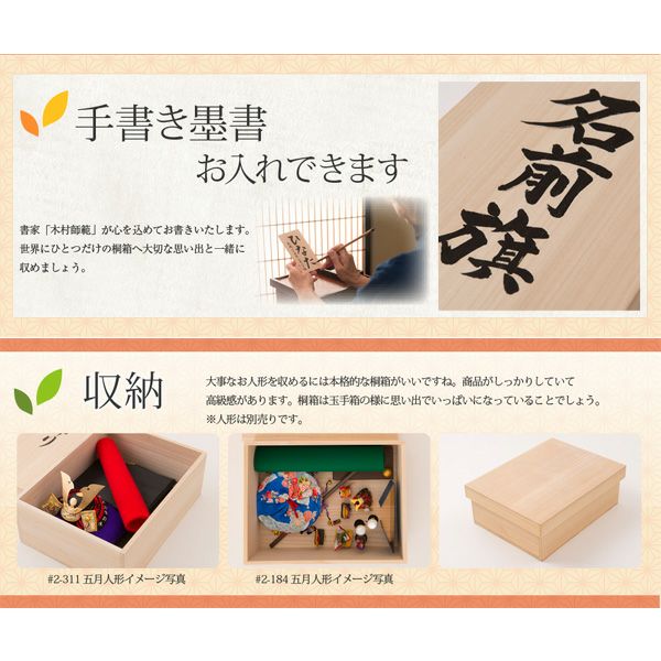 他の画像を見る 販売価格 ¥ 4,675 税込 詳細を見る お気に入りに登録する 【箱書付き名前旗(小)桐箱 KH-N2】 桐箱 収納 保管 雛人形 五月人形 鯉のぼり 迎春飾り 人形用※桐箱のみ 名前旗 人形 小物は別売り※代金引換不可 在庫切れ