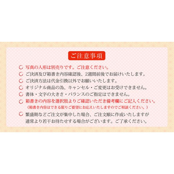 他の画像を見る 販売価格 ¥ 3,720 税込 カートに入れる お気に入りに登録する 【雛人形 五月人形 兜飾り 迎春飾り 人形用 KH-5F】 桐箱 収納 保管桐箱サイズ 約18×29.5×10 ※桐箱のみ。人形、その他小物は別売り。