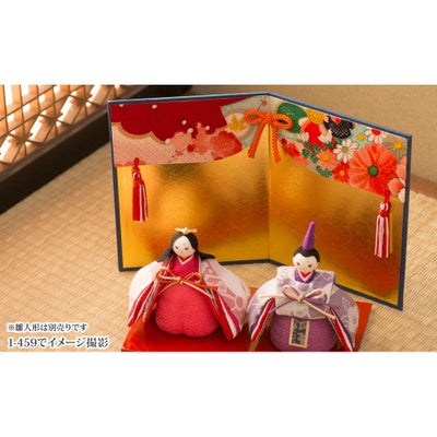 おしゃれなひな人形 省スペースで飾れる! 龍虎堂 雛人形 屏風 小道具 コンパクト かわいい 房飾り付き17h 金屏風 リュウコドウ