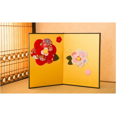 女の子が産まれての「初節句」は、嫁方の親が「子供の身代わりとなって災いが降りかからないように」という思いを込めた雛人形を贈ります。古の習わしと現代の雛祭りを融合し、お子さまのお部屋にお飾りいただく、季節を演出するインテリア、お店などのディスプレイや恋人への沢山の思いを込めたプレゼントなど多くのシーンで大活躍します。縮緬細工の優しい風合いの華やかな花柄の屏風。お手持ちのお雛様を華やかに引き立てます。