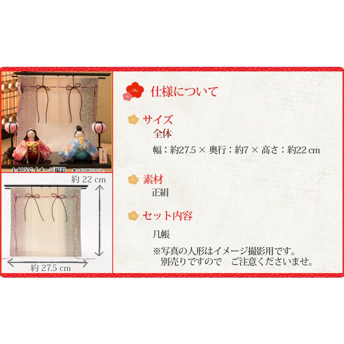 他の画像を見る 販売価格 ¥ 4,840 税込 詳細を見る お気に入りに登録する おしゃれなひな人形 省スペースで飾れる! 龍虎堂 雛人形 小道具 コンパクト かわいい 桜のれん几帳 リュウコドウ 小道具2 在庫切れ