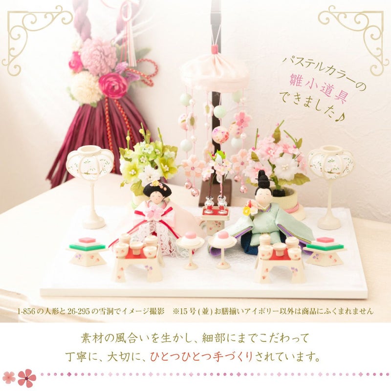 他の画像を見る 販売価格 ¥ 8,250 税込 詳細を見る お気に入りに登録する 送料無料 おしゃれなひな人形 ちりめん 省スペースで飾れる! 龍虎堂 雛人形 小道具 コンパクト かわいい 15号(並)お膳揃い リュウコドウ 小道具2 在庫切れ