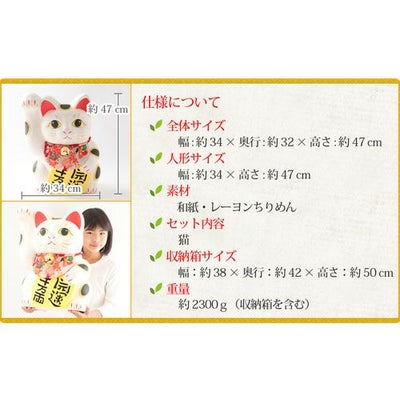 送料無料 招き猫【開運 千万両 招き猫(特大)ちぎり和紙 6-462】リュウコドウ 龍虎堂