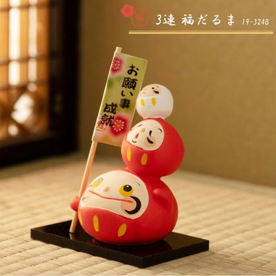 商品特徴:幸せ3倍!3連福だるま。おめでたい新年の門出を一層華やかに演出いたします。