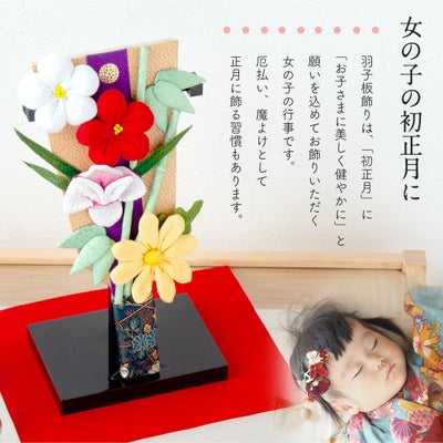 羽子板は室町時代の文献に登場します。当初は羽突きの道具として用いられていましたが、徐々に厄払いとしても使われるようになり魔よけとして正月に女性に贈る習慣もこのころ出来たとされます。江戸時代に入ると、歌舞伎役者などをかたどった押絵羽子板が流行しました。新しい年を迎えるにあたって、厄をはね返し幸運を呼び込む縁起物として羽子板を是非お飾りください。