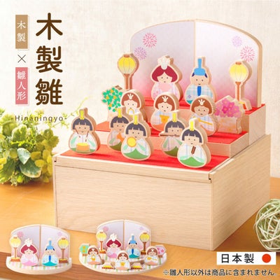 ◆【新作 2024年】雛人形 コンパクト お雛様 ひな人形 おしゃれ 木製 木製雛人形 収納飾り かわいい 三段飾り 十人/五人/親王飾り 三人官女 五人囃子 木目 御祝 ギフト 雛祭り コンパクト収納 りん雛◆