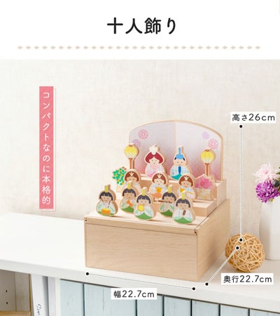 雛人形 コンパクト お雛様 ひな人形 おしゃれ 木製 木製雛人形 十人/五人/親王飾り 収納飾り りん雛