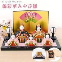 雛人形 コンパクト かわいい 錦彩華みやび雛 五人飾り 陶器 薬師窯 桐箱 ピンク毛氈付