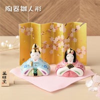雛人形 コンパクト モダン 新作 2026年 おしゃれ かわいい お雛様 ミニ サイズ ひな人形 親王飾り 彩絵華小紋雛 桐箱 陶器 陶磁器 台座 立札 薬師窯