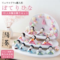 雛人形 新作 2026年 コンパクト かわいい 三段飾り ぽてりひな 10人(麻の葉) 木製台飾りセット 十人飾り リュウコドウ