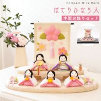 雛人形 コンパクト かわいい 二段飾り ぽてりひな5人(麻の葉)木製台飾りセット 五人飾り ケース飾り リュウコドウ