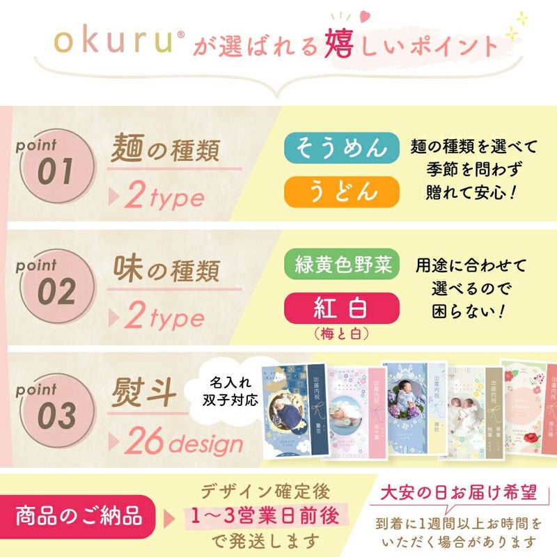 他の画像を見る 出産内祝いに大人気★各種内祝いや御祝におすすめ 名入れ 写真入りギフト 老舗池利の三輪そうめん ★ポイント5倍★新デザイン登場!! まぁるい麺ギフト okuru 三輪そうめん/うどん ポイント5倍 販売価格 ¥ 1,680 税込 詳細を見る お気に入りに登録する