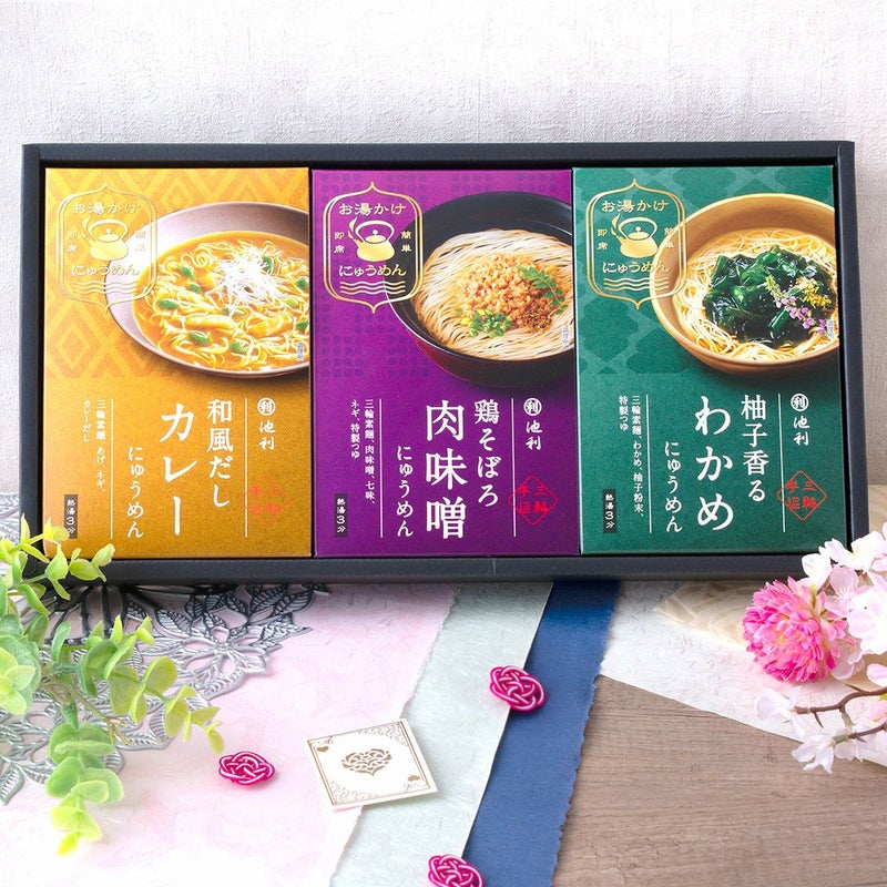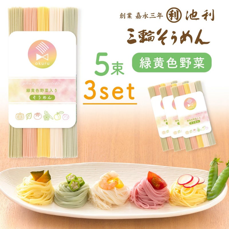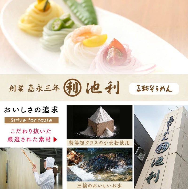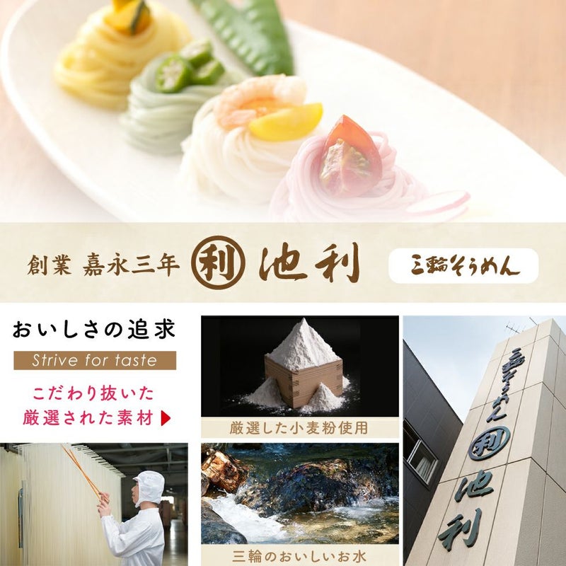 他の画像を見る 贈答 プレゼント お祝い 誕生 記念 ギフトセット 老舗池利の三輪そうめん お中元 そうめん おしゃれ 人気 緑黄色野菜入り 七夕 ギフト 50g×5束セット メール便送料無料 販売価格 ¥ 1,200 税込 詳細を見る お気に入りに登録する
