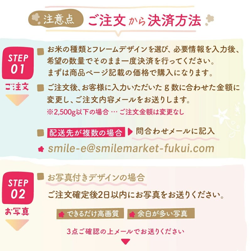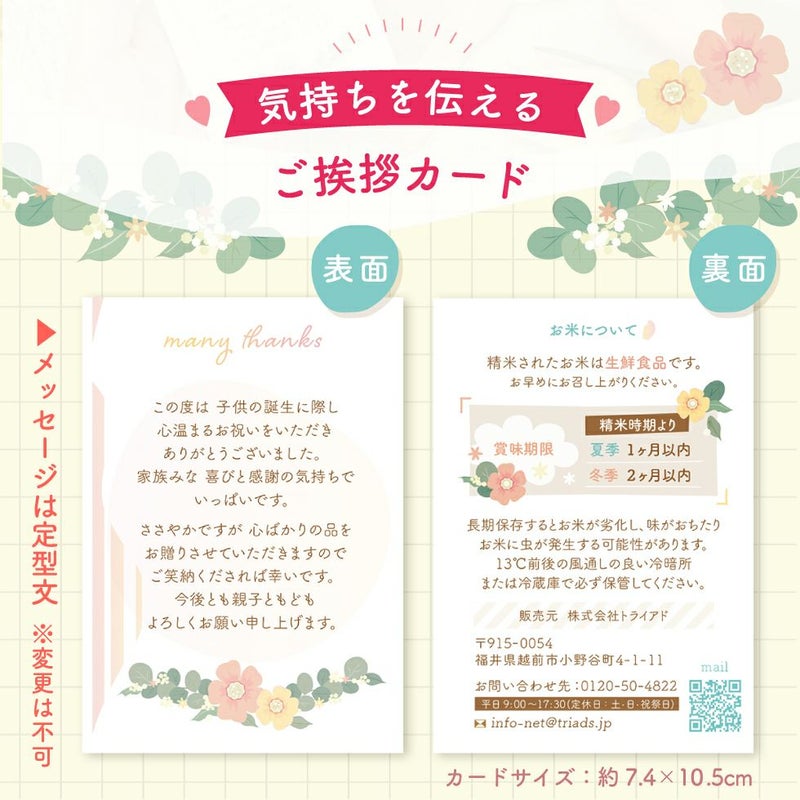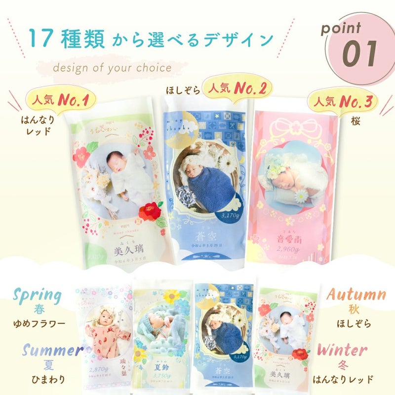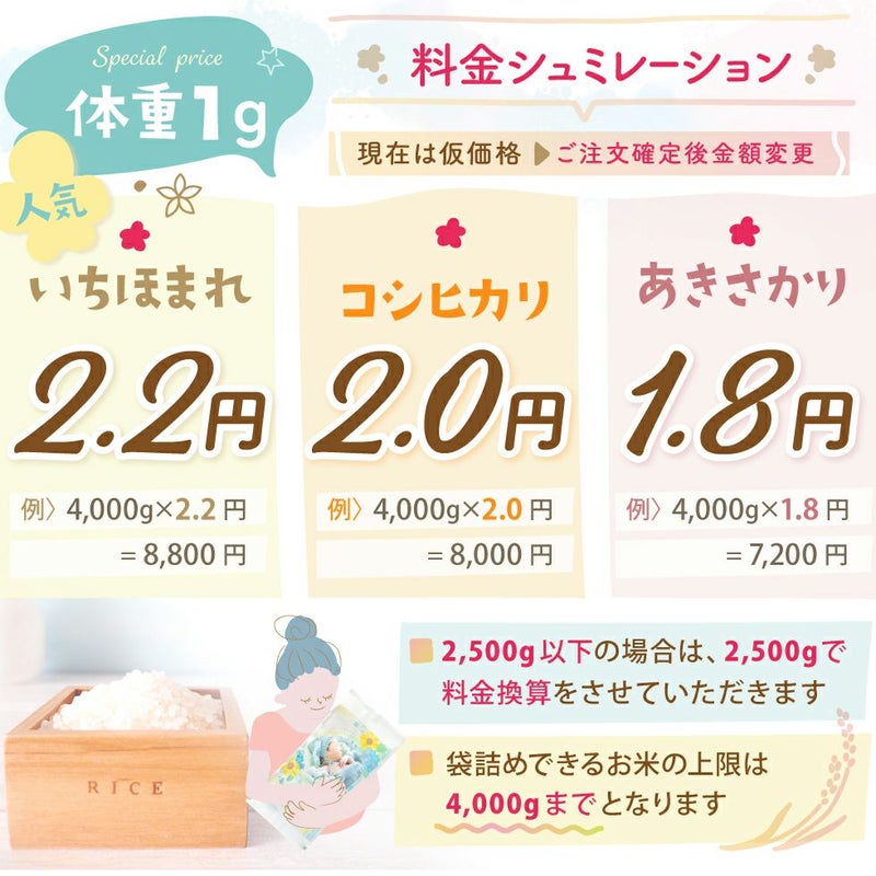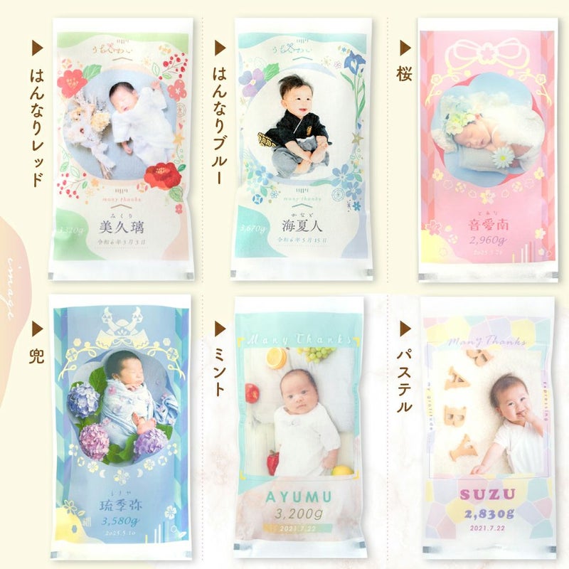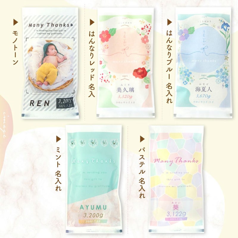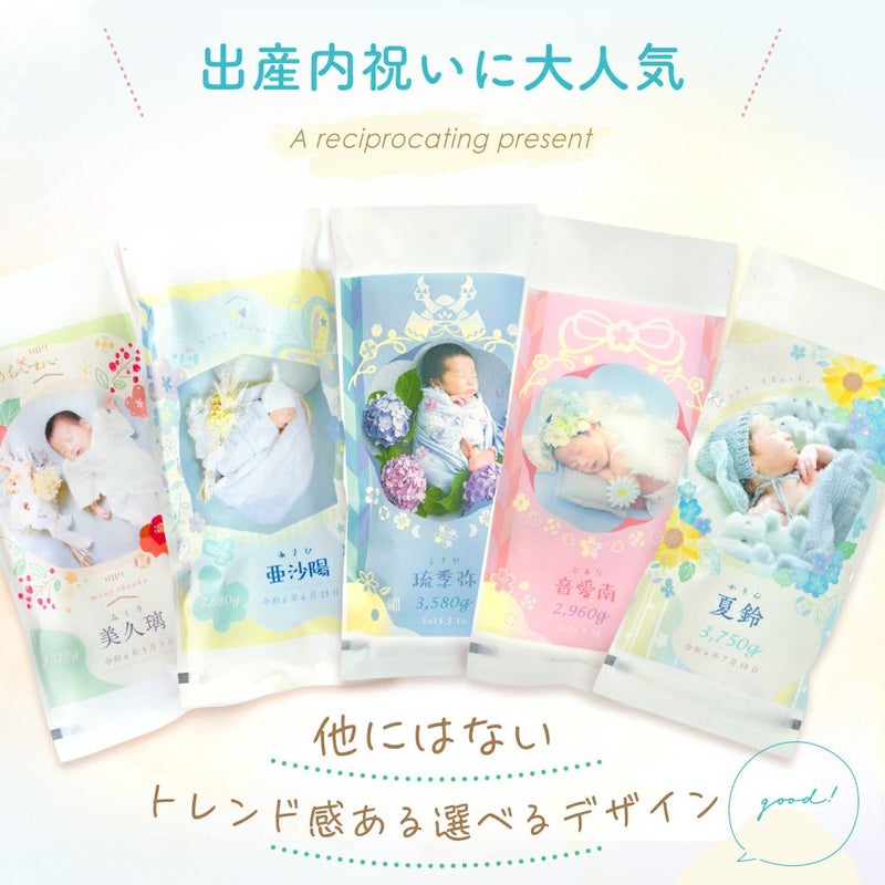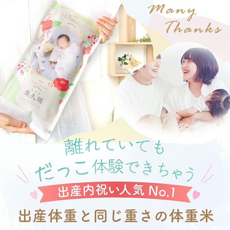 他の画像を見る 出産内祝いに大人気★トレンド感のあるデザインに写真が入ったお米ギフト コシヒカリ/あきさかり 新デザイン登場!! 令和7年度産 新米 体重米 いちほまれ 1g=2.2円, コシヒカリ 1g=2.0円, あきさかり 1g=1.8円 送料無料 販売価格 ¥ 4,500 税込 〜 販売価格 ¥ 税込 詳細を見る お気に入りに登録する