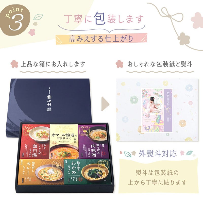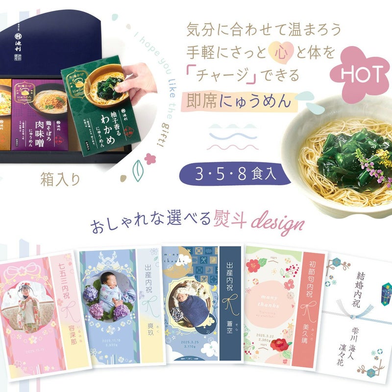 他の画像を見る 出産内祝いに大人気★各種内祝いや御祝におすすめ 名入れ ギフト 老舗池利の三輪そうめん 【新商品!!】出産内祝い 内祝い 出産 ギフト にゅうめん 三輪そうめん 三輪素麺 お湯かけにゅうめん 販売価格 ¥ 2,160 税込 〜 販売価格 ¥ 税込 詳細を見る お気に入りに登録する