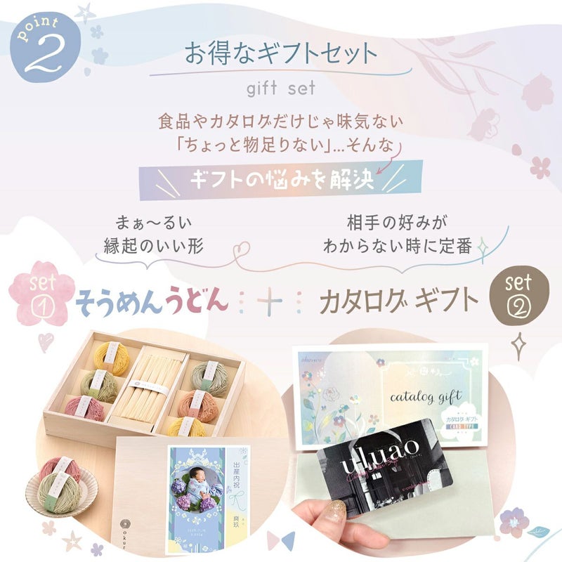 他の画像を見る 夫婦円満を願う縁起の良い「まぁるい」七色七味の三輪素麺 【新商品】出産内祝い 結婚内祝い 出産 そうめん うどん 紅白 カタログギフトセット【uluao (ウルアオ) 】ハリエット おしゃれ 内祝い 販売価格 ¥ 9,400 税込 詳細を見る お気に入りに登録する