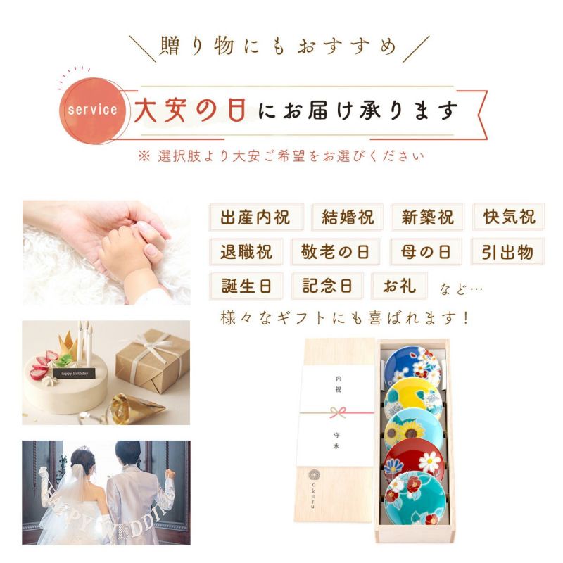 他の画像を見る 開店祝い 新築祝い 伝統的な九谷焼の技法と現代的なデザインがマッチ 縁起豆皿 四季の花/吉祥柄/縁起花 九谷焼 豆皿 皿 小皿 セット 和食器 開店祝い 新築祝い ギフト 贈り物 プレゼント オシャレ 木箱入り かわいい 食器 【まめ皿】 ※縁起花 2枚/5枚セット 11月下旬発送予定 送料無料 販売価格 ¥ 3,260 税込 〜 販売価格 ¥ 税込 詳細を見る お気に入りに登録する