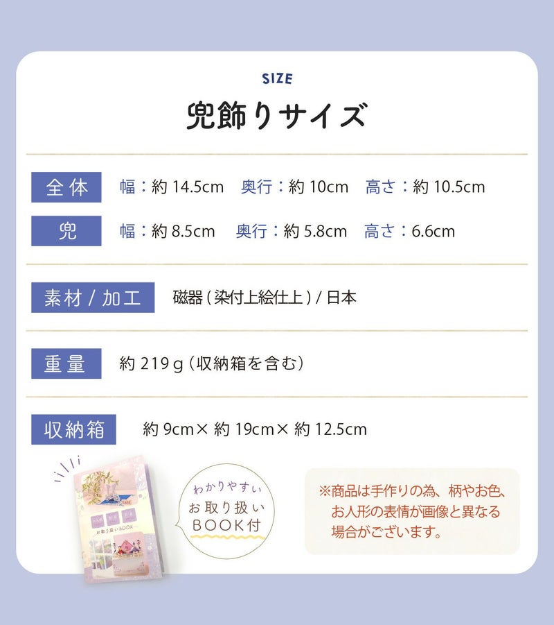 他の画像を見る おしゃれでモダンな五月人形! 端午の節句を華やかに! 省スペースで飾れる 五月人形 兜 兜飾り コンパクト かわいい 初節句 桐箱セット 陶器 陶磁器 染錦出世兜(尚武・小) 瀬戸焼 薬師窯 販売価格 ¥ 3,300 税込 〜 販売価格 ¥ 税込 詳細を見る お気に入りに登録する