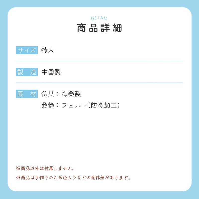 他の画像を見る お盆飾り お盆 お彼岸 命日 月命日 初盆 新盆 仏具 御先祖 先祖供養 夏 小さい 京都 リュウコドウ 京都 和雑貨 ペット メモリアル 供養 ペット供養 お供え 記念品 お悔やみ ペット仏具 ペット骨壺 永遠の愛(6種) 木製台付 置物 かわいい 陶磁器リュウコドウ 販売価格 ¥ 3,630 税込 カートに入れる お気に入りに登録する