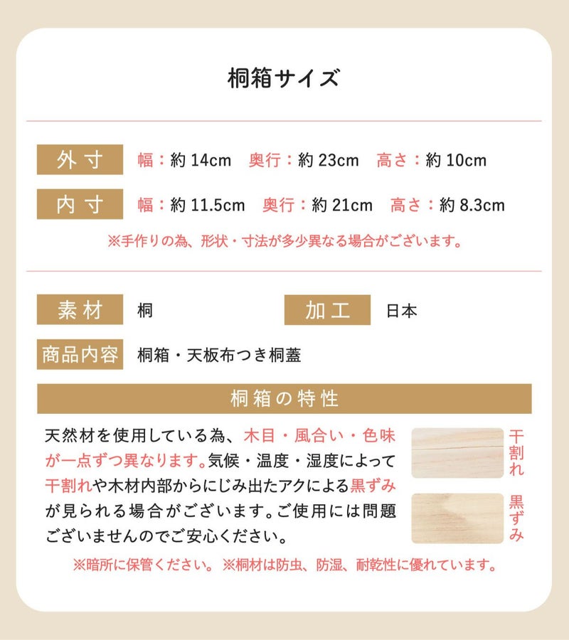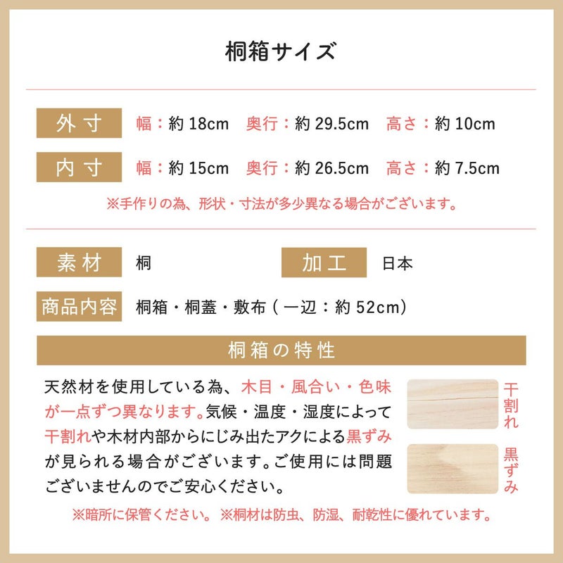 他の画像を見る 【雛人形 五月人形 兜飾り 迎春飾り 人形用 KH-53F】 桐箱 収納 保管桐箱サイズ 約25.5×29×10.5※桐箱のみ。人形、その他小物は別売り。 販売価格 ¥ 5,200 税込 カートに入れる お気に入りに登録する