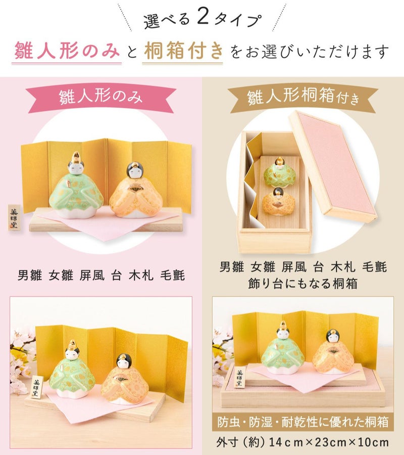 他の画像を見る 雛人形 コンパクト モダン 新作 2026年 おしゃれ かわいい お雛様 ミニ サイズ ひな人形 親王飾り 彩絵華錦雛(香色)桐箱 陶器 陶磁器 台座 立札 薬師窯 送料無料 販売価格 ¥ 5,500 税込 〜 販売価格 ¥ 税込 詳細を見る お気に入りに登録する