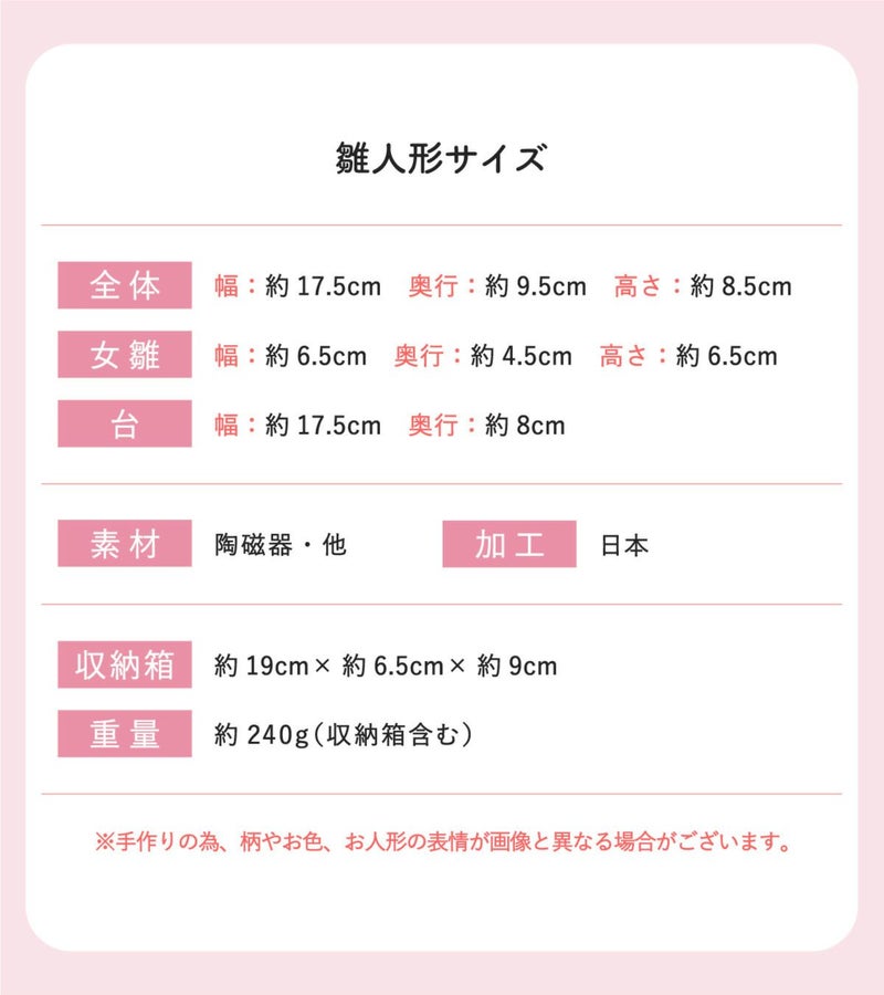 他の画像を見る 雛人形 コンパクト 雛人形 ひな人形 おひなさま お雛様 かわいい 桃の節句 初節句 ひなまつり 雛人形 コンパクト モダン 新作 2026年 おしゃれ かわいい お雛様 ミニ サイズ ひな人形 親王飾り 彩絵玻璃座雛(華の舞) 陶器 陶磁器 ガラス 桜屏風 販売価格 ¥ 3,850 税込 〜 販売価格 ¥ 税込 詳細を見る お気に入りに登録する