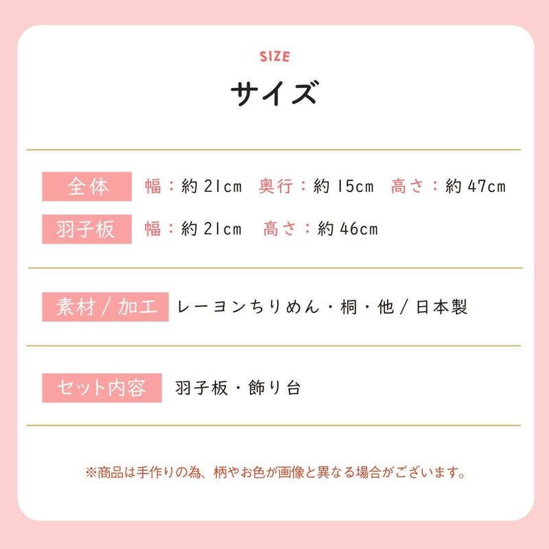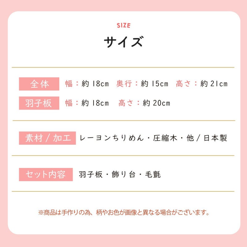 他の画像を見る お正月飾り 迎春飾り 辰 竜 龍 たつ ちりめん 縁起飾り 床の間飾り お店のディスプレイに 【はねつき羽子板飾り 41-70】 羽子板 初節句 初正月 迎春準備 迎春飾り 正月飾り リュウコドウ 販売価格 ¥ 4,400 税込 〜 販売価格 ¥ 税込 在庫切れ 詳細を見る お気に入りに登録する