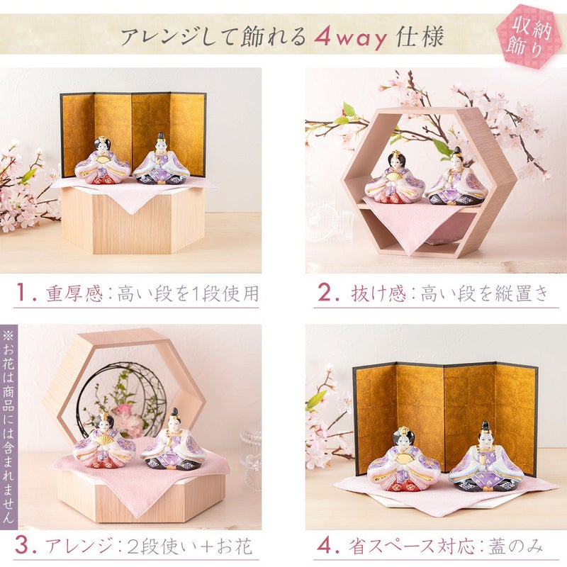 他の画像を見る おしゃれなひな人形 30cmスペースで飾れる! 雛人形 コンパクト かわいい 花むらさき 六角収納飾り 親王飾り 九谷焼 送料無料 販売価格 ¥ 39,800 税込 在庫切れ 詳細を見る お気に入りに登録する