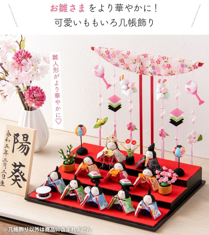 他の画像を見る おしゃれなひな人形 ちりめん 省スペースで飾れる! 龍虎堂 雛人形 新作 2026年 コンパクト 小道具 かわいい ももいろ 几帳飾り リュウコドウ 小道具2 送料無料 販売価格 ¥ 9,900 税込 在庫切れ 詳細を見る お気に入りに登録する