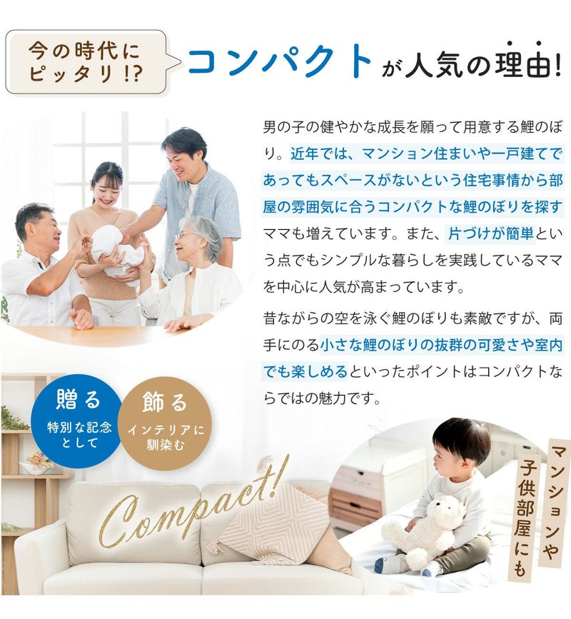 他の画像を見る おしゃれでモダンな五月人形! 端午の節句を華やかに! 省スペースで飾れる 龍虎堂 五月人形 こいのぼり 室内鯉のぼり コンパクト かわいい 吊りふわふわこいのぼり ちりめん リュウコドウ 送料無料 定価 ¥ 18,700 のところ 販売価格 ¥ 18,700 税込 在庫切れ 詳細を見る お気に入りに登録する