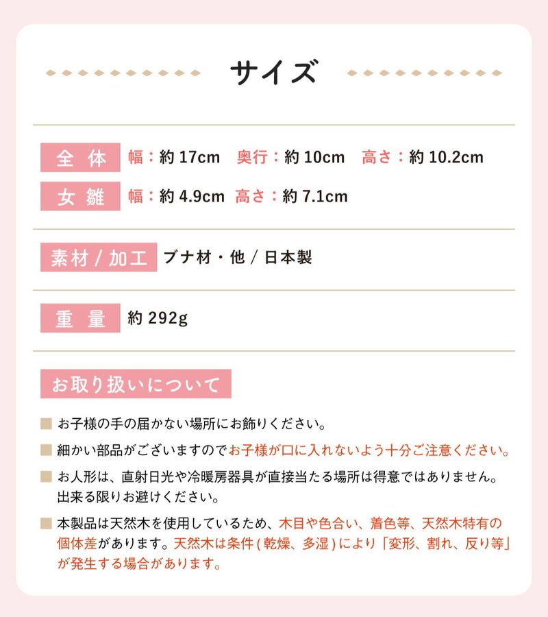 他の画像を見る 当店だけのオリジナルデザイン 木製の収納飾り台付き 初節句 【新作 2024年】雛人形 コンパクト お雛様 ひな人形 おしゃれ 木製 木製雛人形 十人飾り 収納飾り りん雛 送料無料 10%OFFクーポン 定価 ¥ 34,800 のところ 販売価格 ¥ 34,800 税込 在庫切れ 詳細を見る お気に入りに登録する